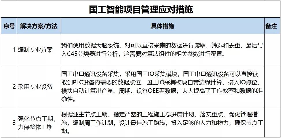 盡管項(xiàng)目實(shí)施存在諸多難點(diǎn),但國(guó)工智能項(xiàng)目團(tuán)隊(duì)能克服困難,以“精心策劃 科學(xué)施工”為施工宗旨,實(shí)現(xiàn)了智能制造平臺(tái)的各項(xiàng)目標(biāo),按時(shí)保質(zhì)完成了合同要求的所有項(xiàng)目。