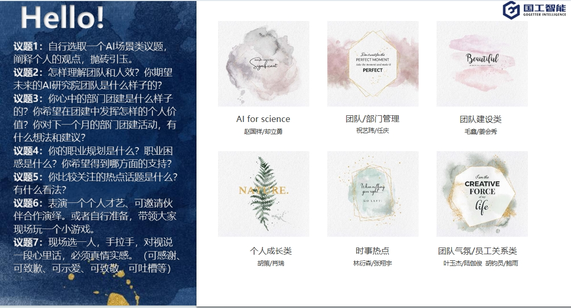 隨著AI技術(shù)的飛速發(fā)展,國工智能認識到團隊成員間交流與合作的重要性,尤其是在國工智能AI研究院這個由海內(nèi)外各名校碩博團隊組成的20余人的高端人才團隊中。本次活動旨在通過輕松的下午茶形式,增強團隊凝聚力、促進團隊成員間的相互了解,同時激發(fā)大家對AI技術(shù)的熱情和思考,可謂是一場激發(fā)創(chuàng)新思維的團建盛會。