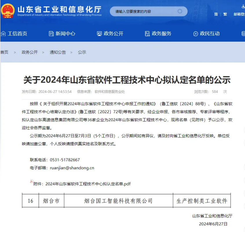 近日,山東省工信廳公示了2024年山東省軟件工程技術(shù)中心名單,全省共36家企業(yè)入圍,煙臺(tái)國工智能科技有限公司成功入選。