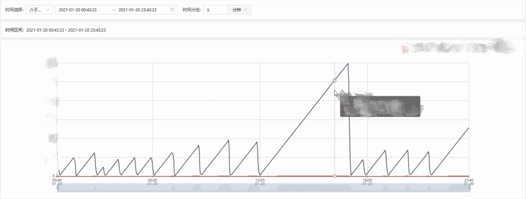這是現(xiàn)場某一設(shè)備的濾網(wǎng)使用時(shí)間分析,按照正常的生產(chǎn)流程,要求單個(gè)濾網(wǎng)的使用周期不得超過60分鐘。從上圖的分析中我們可以看出,在早上6點(diǎn)鐘之前,濾網(wǎng)的更換較為頻繁,基本都在60分鐘以內(nèi)。但在6點(diǎn)之后,濾網(wǎng)的更換周期基本在80~90分鐘,其中更是有一次使用時(shí)間達(dá)到了300分鐘,這就屬于嚴(yán)重超時(shí),肯定會(huì)對(duì)產(chǎn)品質(zhì)量產(chǎn)生影響,同時(shí)也可能會(huì)對(duì)設(shè)備產(chǎn)生磨損。