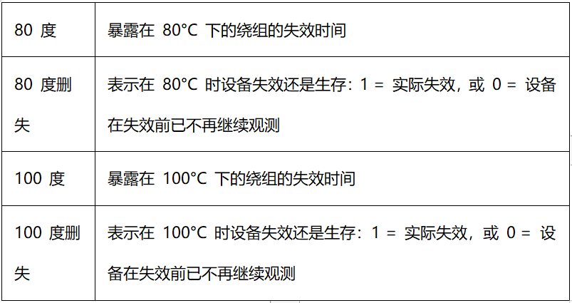 在某企業的生產車間,因為在高溫下繞組可能會分解的過快,因此會造成設備的停機,進而對生產進度造成負面影響。為了減少設備停機率,某可靠性工程師想研究渦輪裝置中發動機繞組的失效率以確定繞組失效的時間。