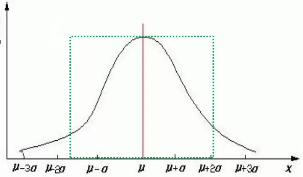 只要回歸方程擬合的足夠理想,即把所有影響因變量的因素都找對了,找齊了,那么剩下回歸擬合值和樣本點之間的各個誤差項就是服從正態分布的了。對于正態分布,我們只需要知道三件事,1.它長什么樣的,就是下圖;2.它的兩個參數,平均數和標準差;3.對于這個圖的解釋是什么,也就是樣本數據集中在平均數(下圖紅線的位置)周圍,且在總體上占到大多數(如圖中綠方框所示,落在綠方框中的樣本數據占很大的比例)。