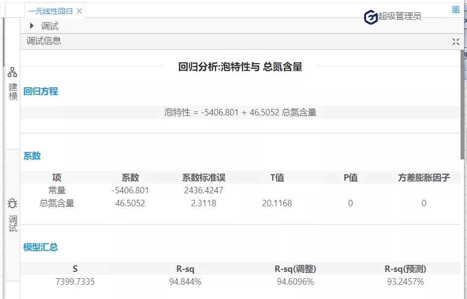 首先,用國工數據大腦平臺的一元線性回歸算法得到回歸方程: