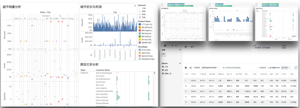 數(shù)據(jù)分析工作最初總是從準(zhǔn)備數(shù)據(jù)開始,連接到任意的數(shù)據(jù)源(如:文件、數(shù)據(jù)庫等)是第一步,分析是動態(tài)的,分析的過程不能靠內(nèi)置規(guī)則模型來完成,需要伴隨思考過程自然的完成分析。每一步操作都應(yīng)產(chǎn)生一個(gè)新的可視化呈現(xiàn),這樣的呈現(xiàn)是基于增量的分析,分析的結(jié)果會在制作報(bào)表時(shí)被引用。