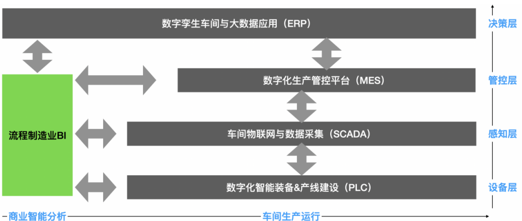 盡管流程制造業(yè)在自動化向數(shù)字化、智能化轉(zhuǎn)型過程中使用的系統(tǒng)或技術(shù)不斷更新迭代,但其與BI在數(shù)據(jù)存儲、處理、分析、可視化及預(yù)測上的融合并不明顯,圍繞生產(chǎn)過程使用的各個(gè)系統(tǒng)(如:PLC、SCADA、MES等)和標(biāo)準(zhǔn)化的數(shù)據(jù)應(yīng)用產(chǎn)品(如:數(shù)據(jù)庫、ETL等)在面向流程制造業(yè)的使用過程中存在以下問題:
