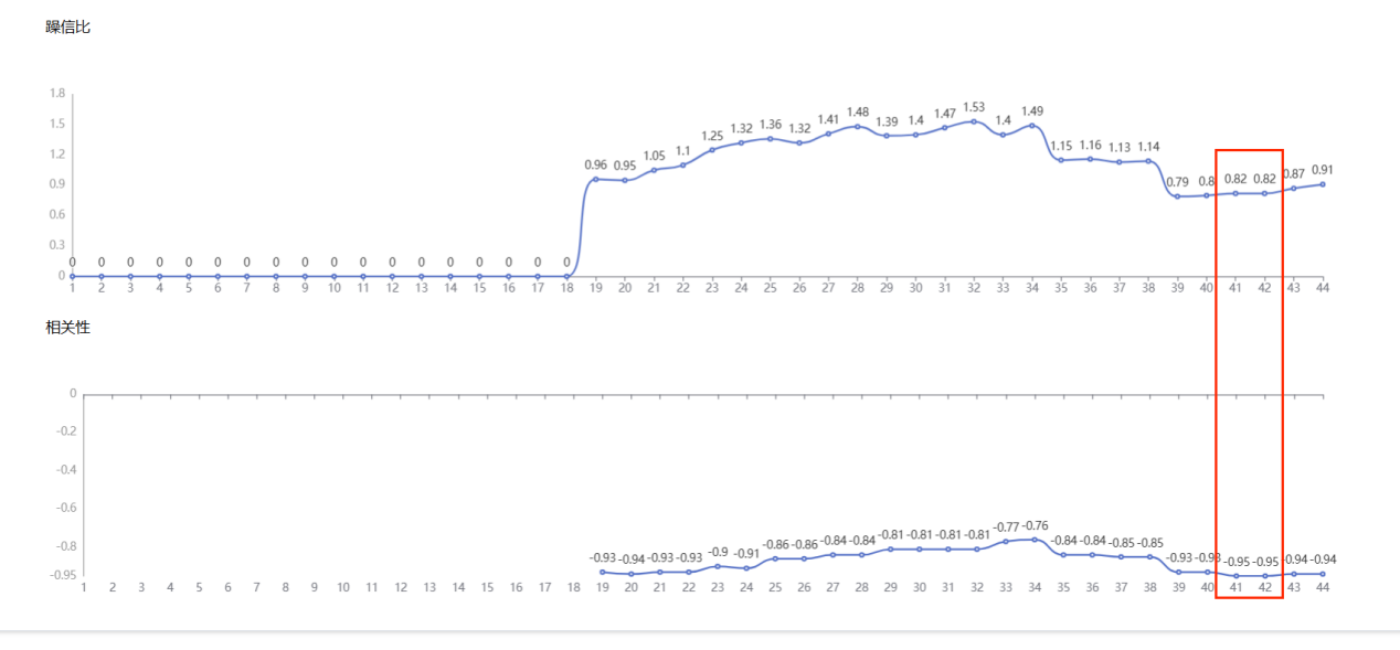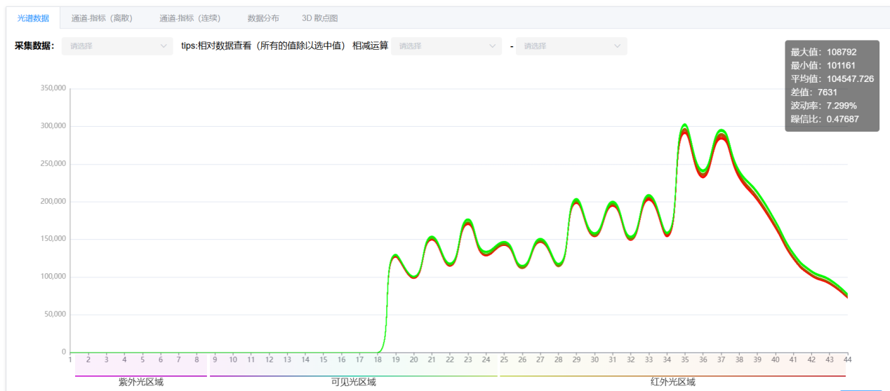 軟件系統(tǒng)通過對含水量錄入的標(biāo)定值與光譜強度進(jìn)行綜合分析,會得出噪信比圖以及相關(guān)性圖。其中噪信比圖表示每個波長通道上光譜數(shù)據(jù)噪聲與有效信息的比值,在實際應(yīng)用中,此值越小越好。相關(guān)性圖表示所有樣品,在每個波長通道上吸收強度與指標(biāo)標(biāo)定值的線性或者非線性關(guān)系是否良好,直接反應(yīng)出其檢測的可行性,在實際應(yīng)用中,此值越大越好。