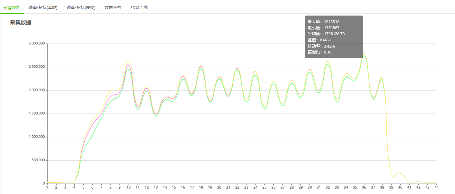 檢測(cè)方式:將溶液(A處理前溶液、A處理后溶液)分別采集數(shù)據(jù)。利用國(guó)工智能在線光譜儀于近紅外通道,對(duì)液體使用一致性對(duì)比的檢測(cè)方式,檢測(cè)處理前與處理后的差異,判斷其是否有效。