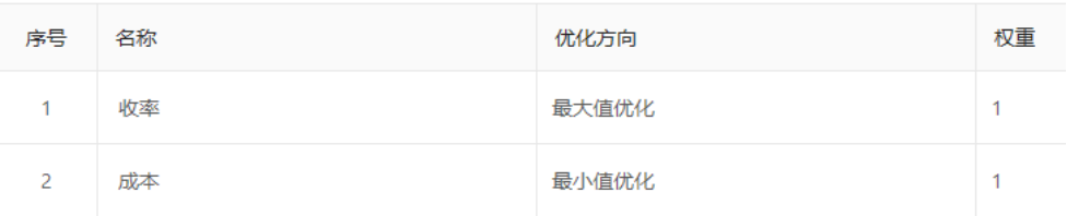 首先,打開國工智能數(shù)據大腦平臺,進入實驗優(yōu)化界面,對實驗信息進行配置。使用的指標分別是收率和成本,要求收率最大化及成本最小化,并可分配指標的權重,如圖2。