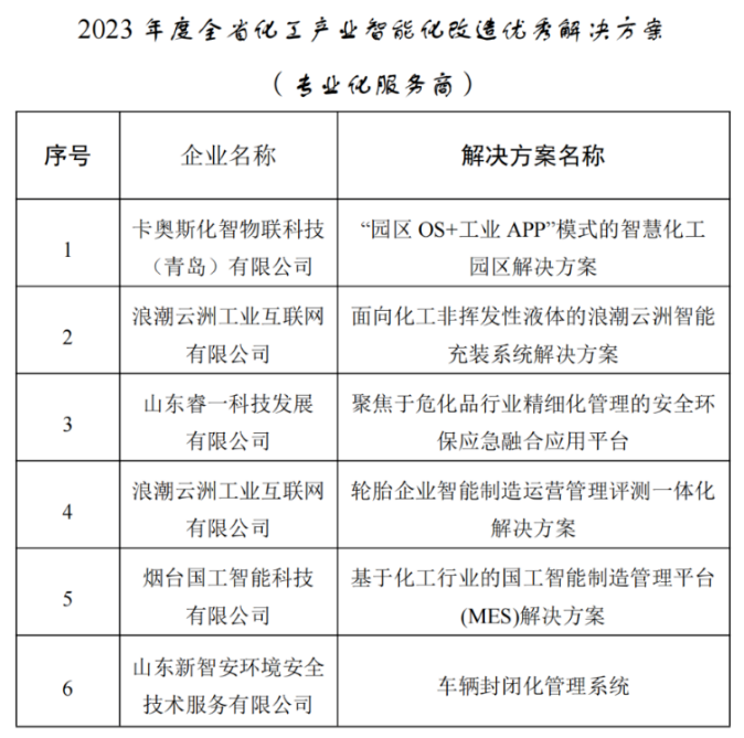 根據(jù)《關(guān)于組織開展2023年度化工產(chǎn)業(yè)智能化改造優(yōu)秀解決方案遴選工作的通知》(魯化安轉(zhuǎn)辦〔2023〕28號)要求,省化工專項(xiàng)行動(dòng)辦組織開展了2023年全省化工產(chǎn)業(yè)智能化改造優(yōu)秀解決方案遴選工作。經(jīng)自愿申報(bào)、各市推薦、專家評審等程序,擬確定2023年全省化工產(chǎn)業(yè)智能化改造優(yōu)秀解決方案服務(wù)商,現(xiàn)予以公示。國工智能榮幸的被評選為2023 年度全省化工產(chǎn)業(yè)智能化改造優(yōu)秀解決方案專業(yè)服務(wù)商。