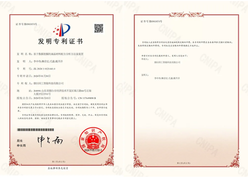 近日,國(guó)工智能新添國(guó)家知識(shí)產(chǎn)權(quán)局頒發(fā)的一項(xiàng)發(fā)明專利證書“基于數(shù)據(jù)挖掘的液晶材料配方分析方法及裝置”。
